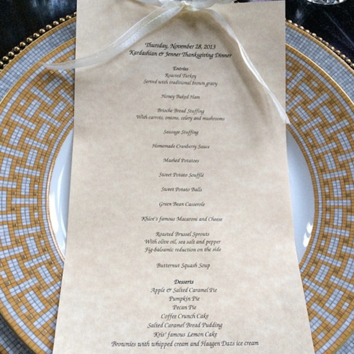 Check Out The Kardashians Thanksgiving Dinner Menu E Online